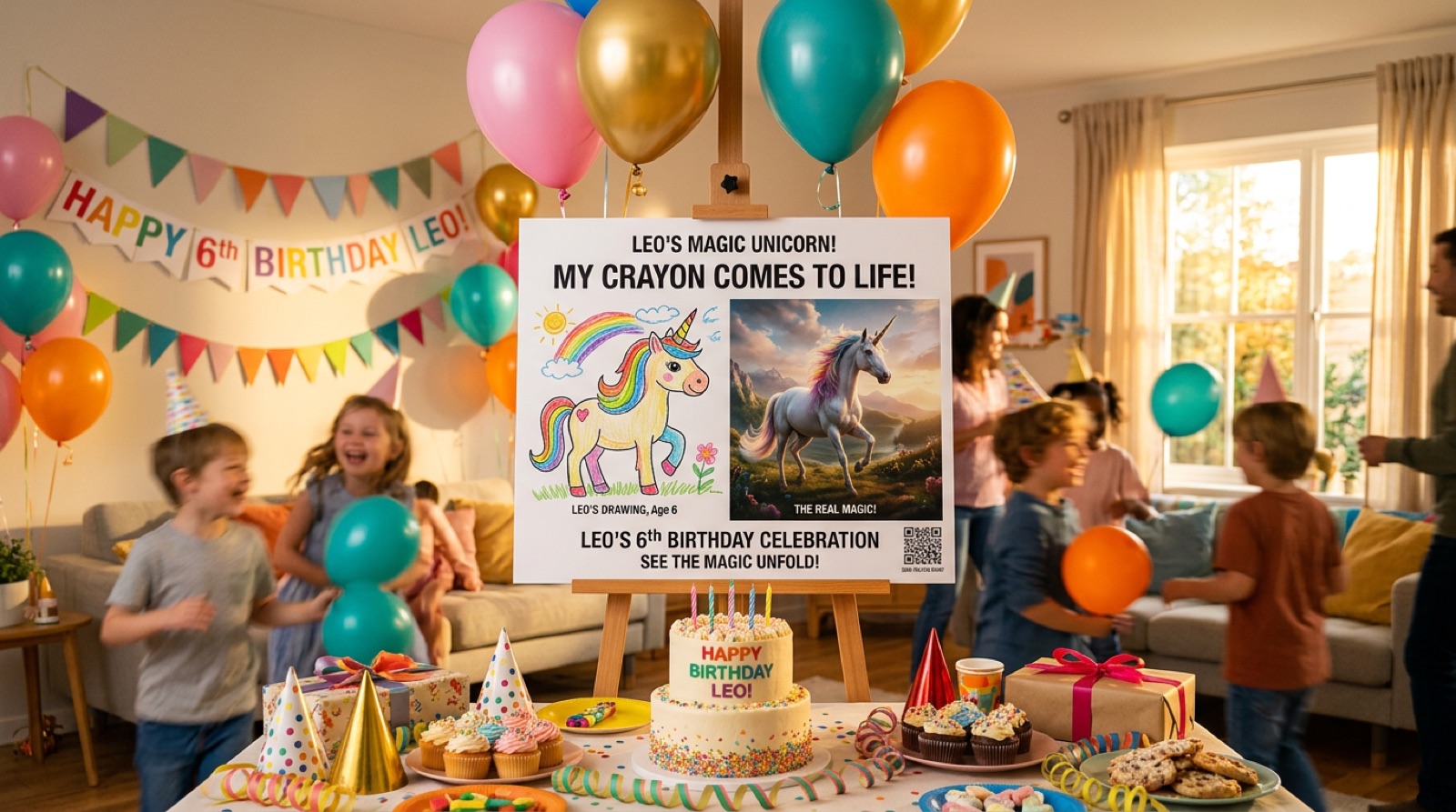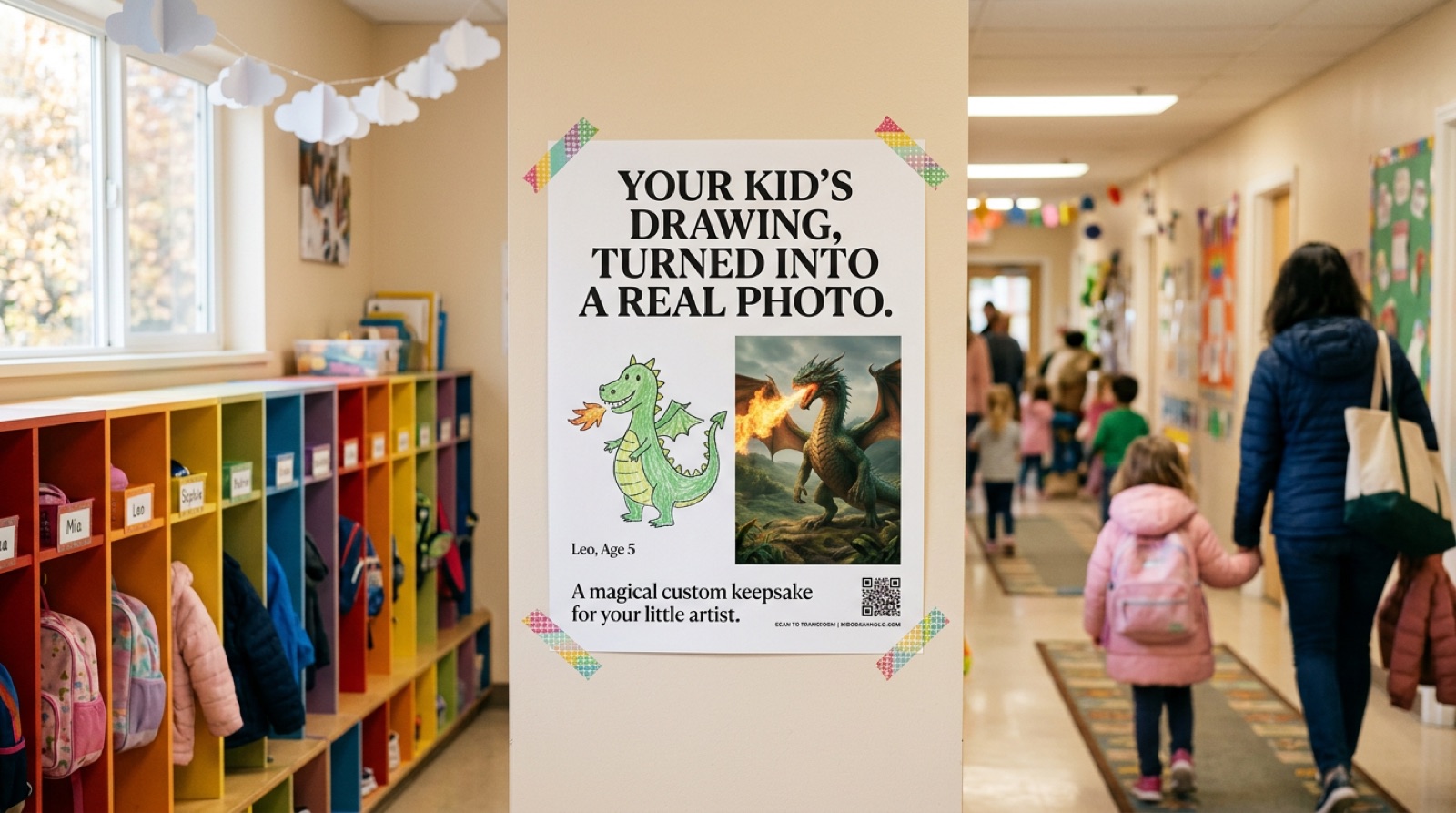 Snap their artwork. Pick a style. Get a cinematic photo, 4-panel comic, or storybook page. Keep it forever.